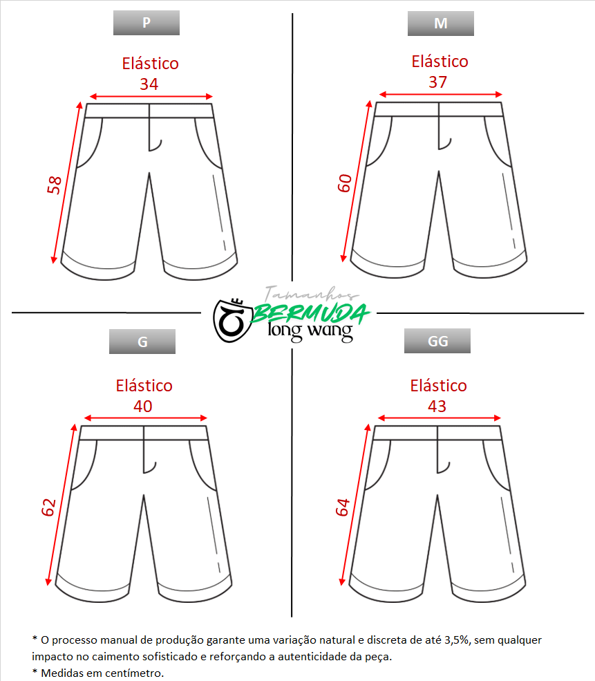 Bermudas em tecido tactel com elástico - Composição 100% Poliéster.